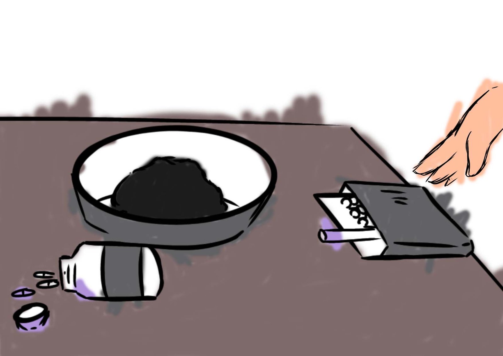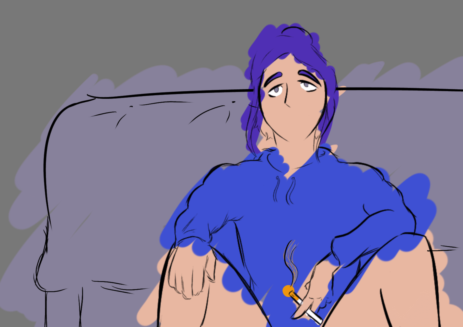 O curta aborda uma atmosfera melancólica: o roxo representa o rastro emocional da protagonista, simbolizando tristeza e repressão de sentimentos. A narrativa faz um contraste entre o controle externo que ela demonstra e o caos interno que tenta esconder, explorando a diferença entre aparência e essência.