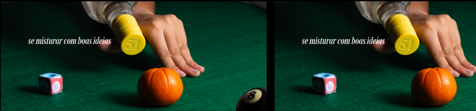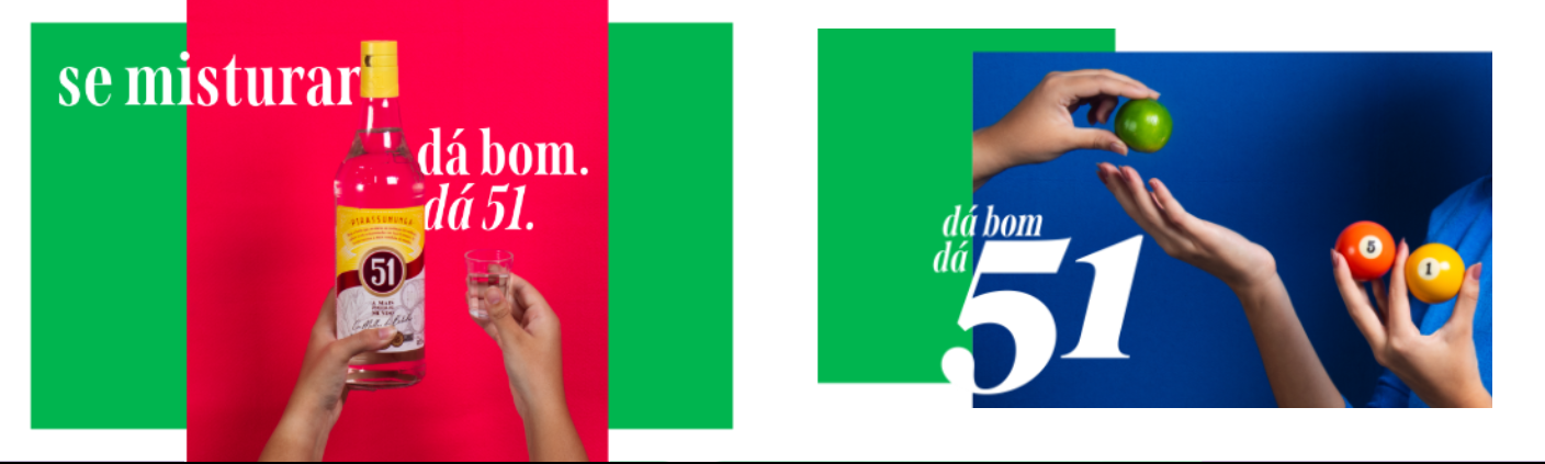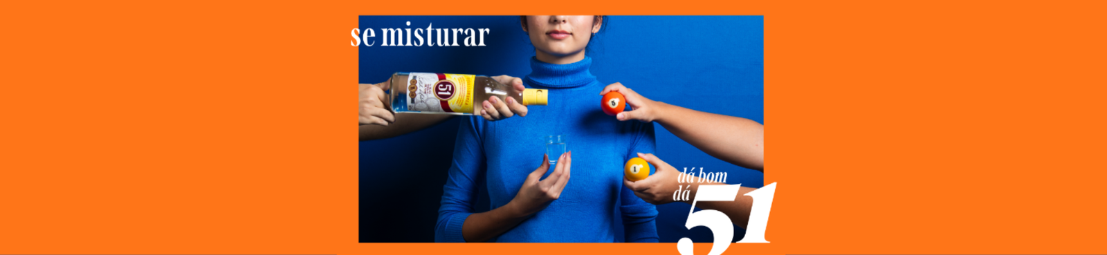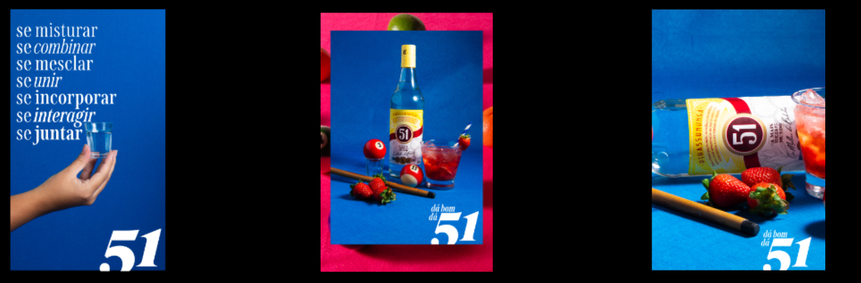 O projeto feito em grupo tinha como objetivo escolher uma marca famosa e juntar a marca com um conceito fornecido. Com isso escolhemos a marca de cachaça 51, e misturamos com o conceito de “buteco brasileiro”, formando não apenas a identidade do projeto, mas dirigindo toda a fotografia, tendo como guia nosso próprio slogan “se misturar, da bom, da 51”. O conceito principal do projeto foi a mistura visual, então tanto as fotos quanto o video tem fotos complementares, não apenas misturando fotos “por fora” como misturando elementos de buteco e da bebida, fazendo uma brincadeira com a questão da mistura. O projeto consistiu na criação do slogan, da direção e criação das fotos, do powerpoint e do video promocional, ornando com a trilha sonora. As fotos foram todas pensadas estratégicamente antes, e tiradas e dirigidas por nós no próprio estúdio da ESPM.