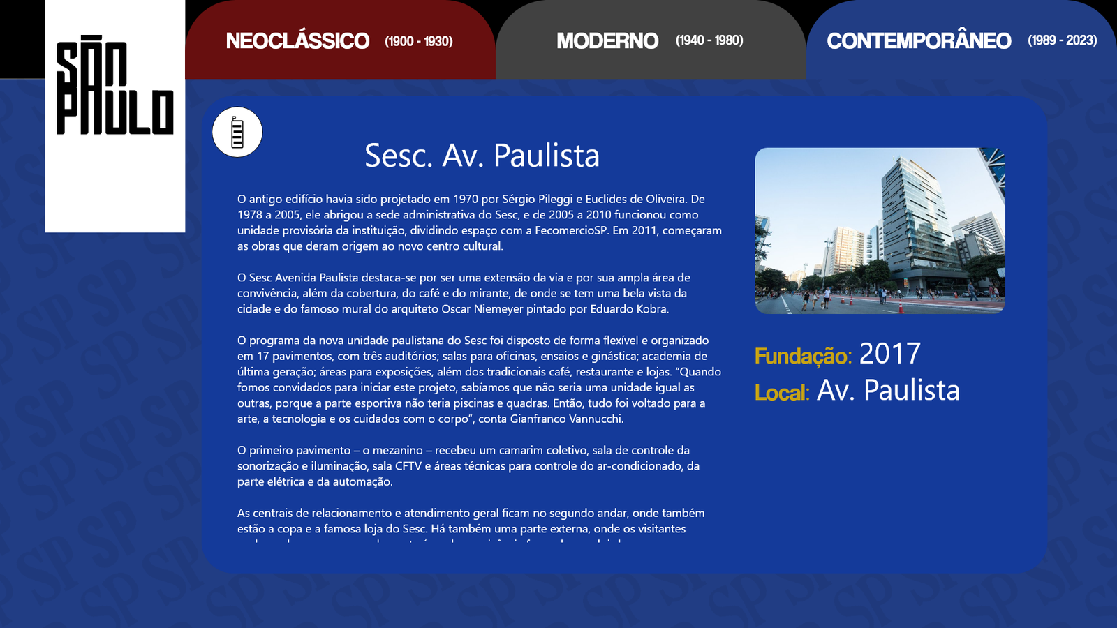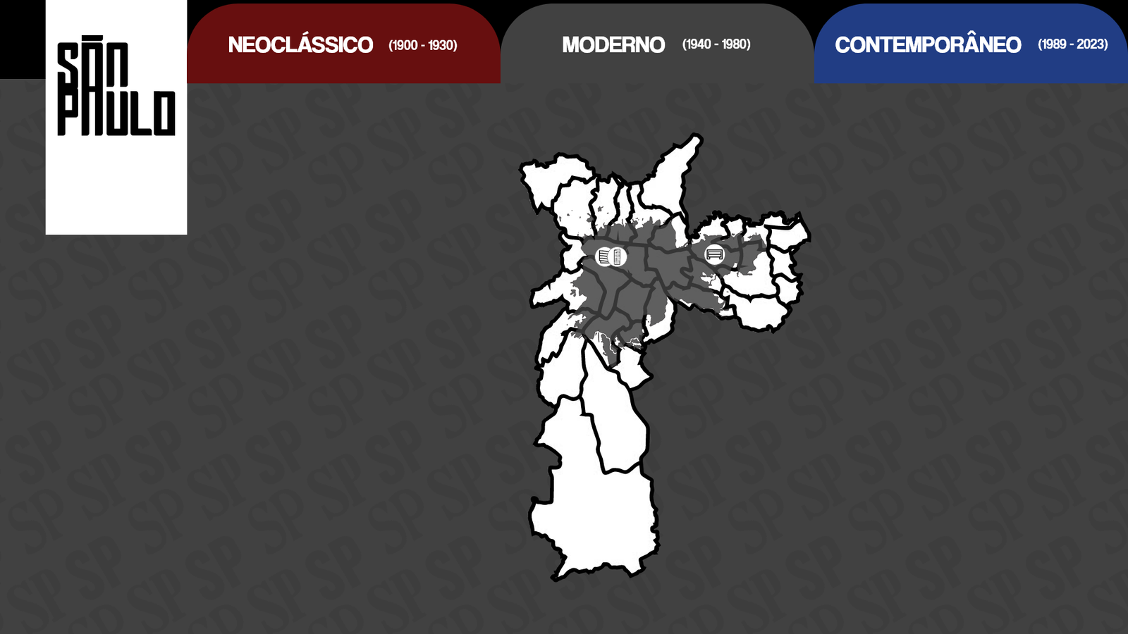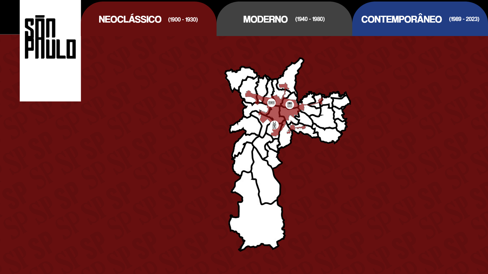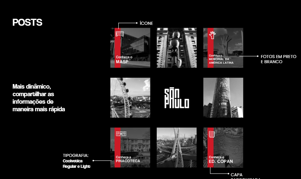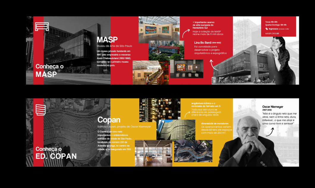 Conhecida como a grande selva de concreto, a cidade de São Paulo é uma paisagem com de tudo um pouco. Há diversidade nas pessoas, músicas, culturas, arte e principalmente arquitetura e história. Diante disso nosso design digital foi desolvido com base na arquitetura paulistana e suas mudanças ao longo do anos.